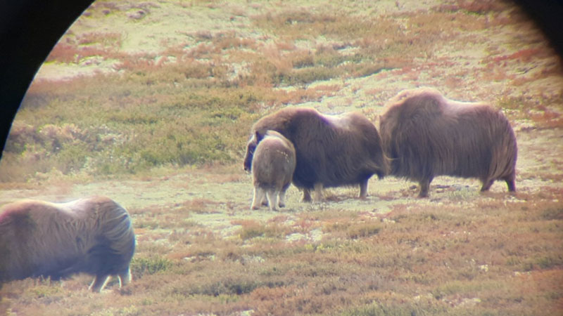 Rune er vår guide på moskussafari. Han er kunnskapsrik og lærer oss om moskusen og hvordan vi forholder oss til disse store eksotiske dyrene som holder til her i området. Og det er vi som er gjester på dyrenes område og vi må forholde oss deretter! Moskussafari er spennende. Området er såpass småkupert at vi kan støte på moskus plutselig og bak nærmeste haug! Eller vi får sett dem bare på langt hold, hvis vi finner dem. Her er det ingen garanti.