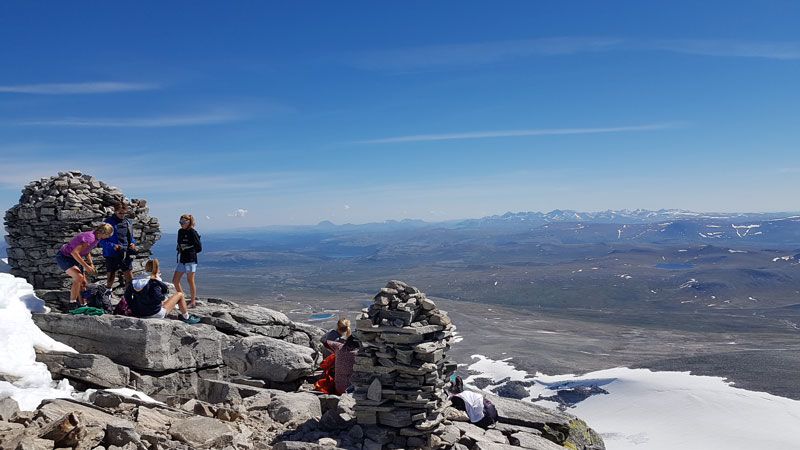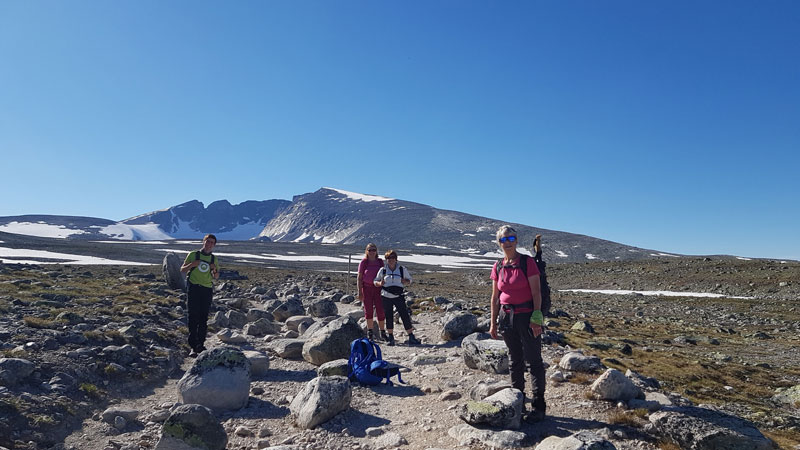 Noen av oss som er med på turene har lyst til å gå opp på Snøhetta. Fra toppen av Snøhetta kan man få en fantastisk utsikt, hvis det er klart vær. Men heller ikke her er det noen garanti. Det er en flott tur uansett. Her det mye steinur,og jeg tenker med beundring på hvordan Birgit Skarstein kom seg opp dit, dog med god hjelp av Lars Monsen og flere, for noen år siden.