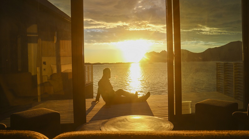 Men jeg er i ei trygg havn; det gamle fiskeværet Hamn i Senja har vært overnattingssted siden midten av 90-tallet, og etter en moderne oppgradering framstår stedet som en førsteklasses kystresort i harmoni med de storslåtte omgivelsene. Her er det plass til store vennegrupper klare for eventyrlige opplevelser ut mot havet, men Hamn er også et fint sted for avslappende ferier med fokus på fred og ro. For min del blir det nærmest naturstridig å ta kvelden. De splitter nye Aurora-rommene har panoramautsikt mot havet. Det blir et luksusproblem når døgnrytmen sier søvn men sommernatta inviterer ut på nye eventyr.