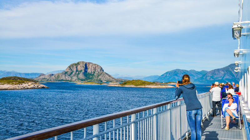 De tusen øyers rike åpenbarer seg med nok en solrik dag – skal flaksen ingen ende ta? Båten suser forbi de Sju Søstre – en av Dronning Sonjas fotturfavoritter – og tar seg god tid forbi den berømte Torghatten, steinen med hull i midten. Øyene er små og flate, mange med et fargerike hus eller to. Området er perfekt for sykkelturer og utforskning i kajakk, og blir av mange kalt det neste Lofoten. Det er i hvert fall like vakkert!