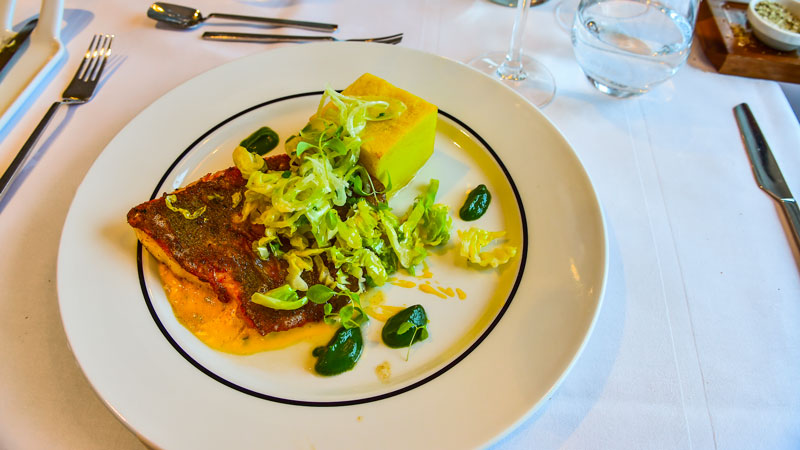 SE KAKA OG SPISE DEN. Tilbake om bord er det vår tur til å få både fast og flytende føde. Og for et kalas! Hurtigruten har satset stort på å utvikle menyen om bord, så det er slutt på pizza, øl og svette hamburgere. Heldigvis. I dag følger menyen norskekystens tradisjoner, fra smalahove til klippfisk, trøndersodd og lutefisk.