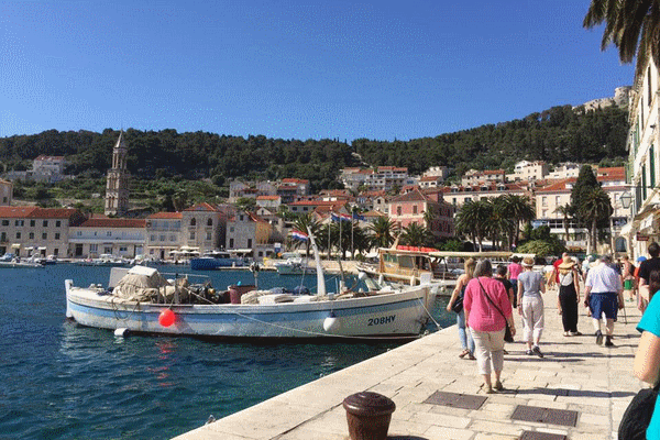 Mens vi seilte ut fra Split, ble det servert lunsj om bord, og vårt første stopp var øya Hvar. Hvar er Adriaterkystens mest solrike øy, sies det, og denne vakre perlen er populær også hos kjendiser fra hele verden. Her finnes et utmerket landliv i form av de beste hoteller, lekre restauranter og utesteder, og en flott båthavn. Men Hvar har også en rik historie og vakker natur, og er kjent for sin produksjon av lavendel. Båten lå ved kai i Hvar over natten, så her var det fullt mulig å utforske byens natteliv!