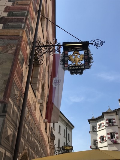 Etter en rusletur i Innsbruck med så mye «åndelig» føde, frister det med lunsj på en av byens mange restauranter. Hva passer vel bedre enn deilig mat i godt selskap, her på Gasthof Goldener Adler.